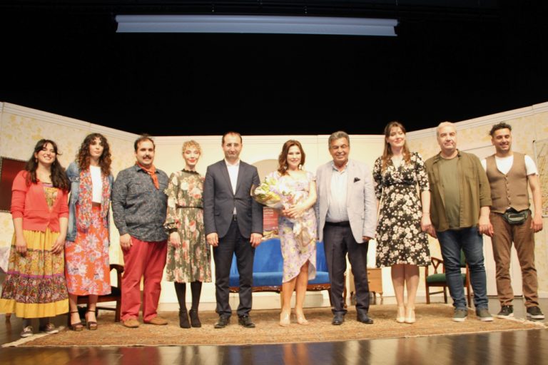 Efe Yeşilay’ın yazdığı, Hakan Altıner’in yönettiği Aydan Şener, Ecmel İs, Işık Selin Günçe, Damla Cercisoğlu, Kahraman Sivri, Kübra Yeşilay, Efe Yeşilay ve Anıl Yülek’in sahne aldığı tiyatro oyunu büyük beğeni ile izlendi. Tek perdelik olarak sahnelenen oyununun sonunda konuşan ÇOSB Yönetim Kurulu Başkanı Eyüp Sözdinler şunları söyledi: “İki yıla yakın bu sahnelerden uzak kaldık. Biz sanayiciler olarak çarklarımızı bu dönemde çevirdik ama bu dönemde en fazla sıkıntıyı sanatçılarımız çekti. Ulu Önder Atatürk’ün de söylediği gibi, ‘Sanat ve sanatçıdan mahrum olan bir toplumun hayat damarlarından biri kopmuş olur.’ Bu düşüncelerle bizlere bu güzel anları yaşatan değerli sanatçılarımızı tebrik ediyoruz.”