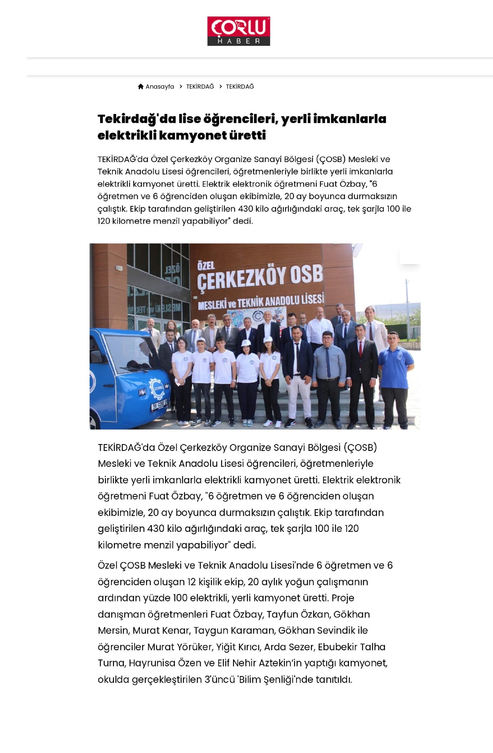 Tekirdağ’da lise öğrencileri, yerli imkanlarla elektrikli kamyonet üretti